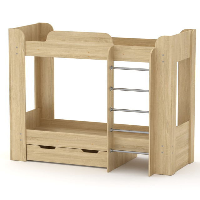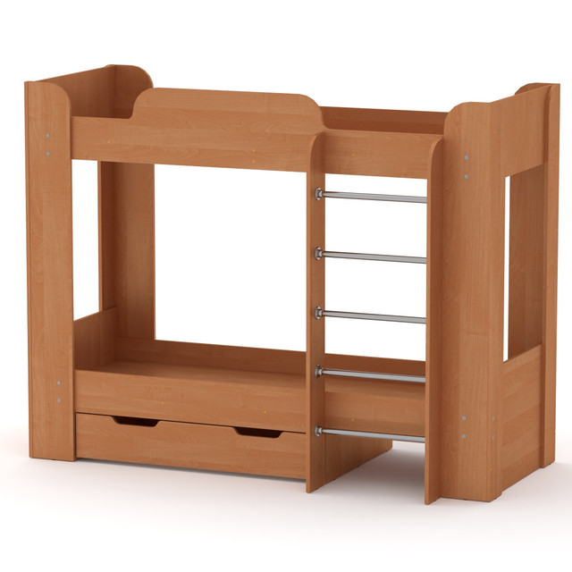 Двоярусне ліжко Твікс -2 меблеві фабрики Компаніт, поєднує в собі два спальних місця і кілька висувних щічок для білизни і сходи для підйому на верхній ярус. Дизайн класичний. Палітра кольорів представлена сім’єю різними варіантами. Завдяки своїй компактності, двоярусне ліжко Бріз чудово підходить для дитячої кімнати, яка дозволяє економити місце для іншої необхідної меблів. Під час збирання може бути і лівосторонній, і правосторонній варіант.