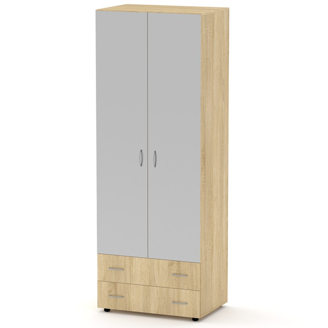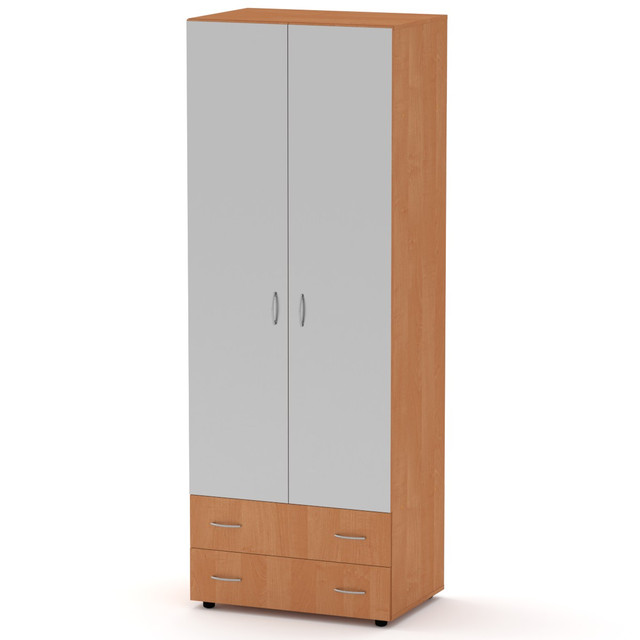 Шафа розпашна-5 меблевої фабрики Компаніт. Розпашна шафа з двома дверцятами, на яких прикріплене дзеркало, обладнана платтяним відділенням, полицею зверху та двома висувними шухлядами знизу. Виготовляється в декількох кольорах.